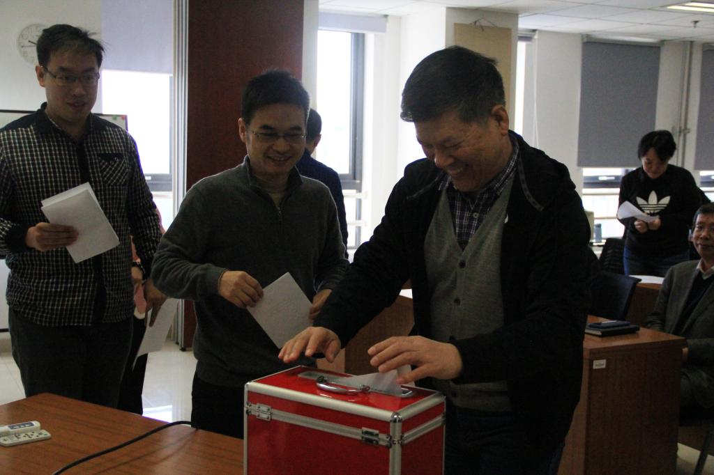 会议的第三项议程是举行汉语国际教育研究院分工会会员大会,主要内容包括选举产生研究院分工会委员会并举行研究院教代会。研究院党总支副书记梁彦民首先介绍了学校对二级分工会委员会和二级教代会的要求及有关情况。常务副院长吴应辉宣布分工会委员会委员候选人名单,他们是王一帆、李荷、梁彦民(姓氏笔画序);选举监票人孟凯、计票人饶高琦和张秀平。两个名单获得大会全体教职工举手表决一致同意。经研究院出席会议全体工会会员无记名投票、计票,监票人孟凯宣布投票结果,王一帆、李荷、梁彦民通过选举,组成研究院分工会委员会。在随后的研究院分工会委员会第一次会议上,研究院党总支副书记梁彦民被选举为研究院分工会主席。