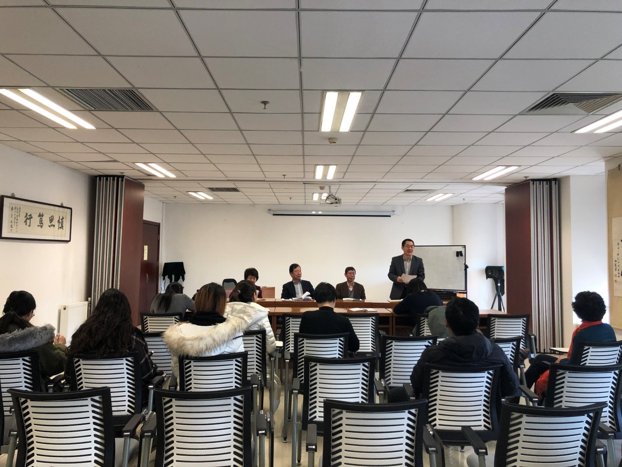 2020年1月13日上午,汉语国际教育研究院在综合楼1125召开“不忘初心、牢记使命”主题教育总结大会。研究院党总支书记梁彦民主持大会,研究院院长崔希亮、常务副院长吴应辉、副院长姜丽萍、中国书法国际传播研究院副院长田琳、全体教工党员和研究生党支部书记参加大会。