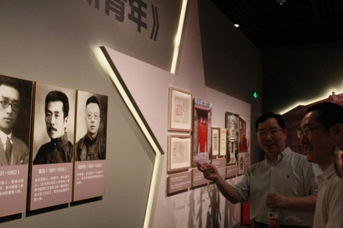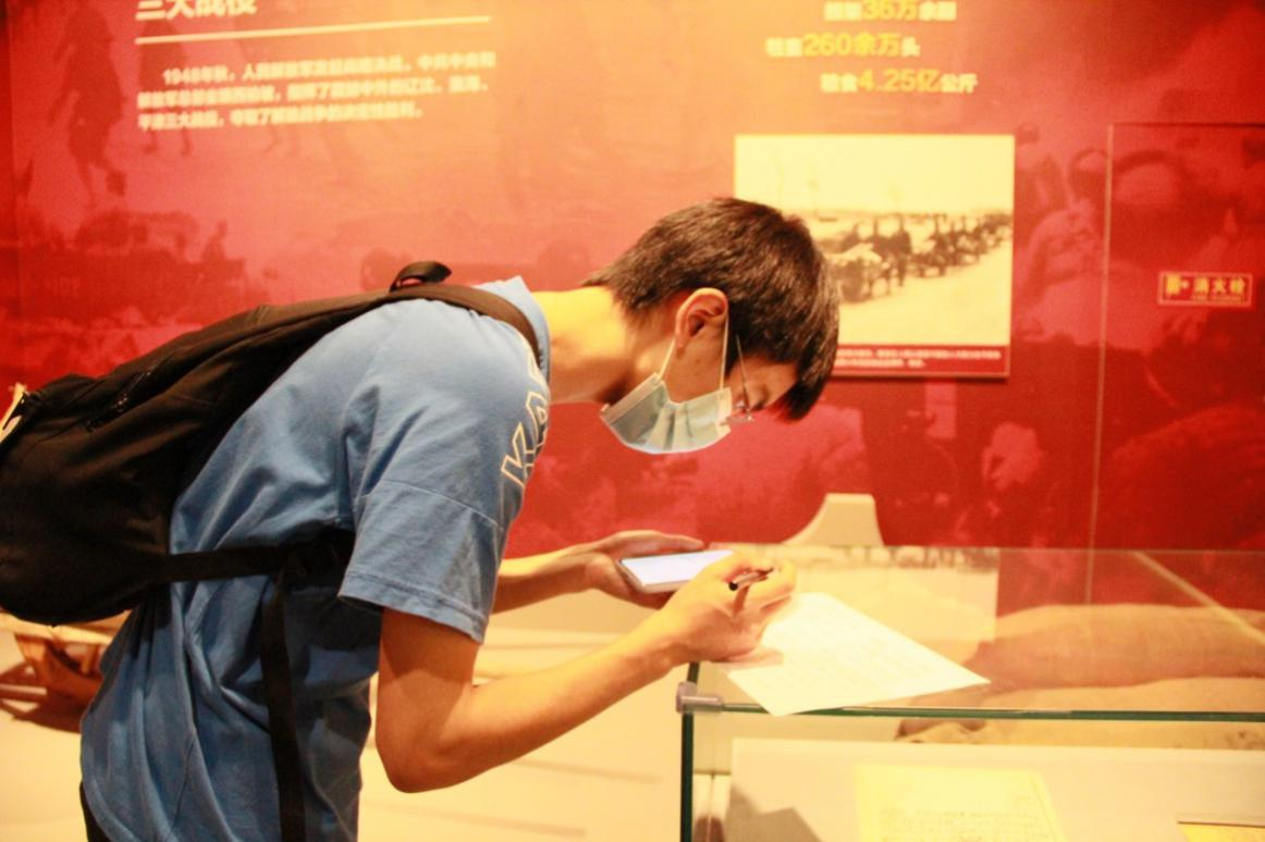 从《共产党宣言》最早的全译本,到全国一大会址嘉兴南湖纪念红船模型;从八七会议的会议记录,到开国大典上使用的礼炮……这些文物和史料还原了重大历史事件,全景展示了中国共产党从建党到建立新中国的革命历程。汉语国际教育研究院师生在馆内怀着虔诚而激动的心情,沿着文物展品和影像记录的指引,从《新青年》的创办走向新中国的成立,不断驻足流连,仿佛置身于那段激情昂扬的光辉岁月。老师们神采飞扬地述说着当年革命先辈的光辉事迹,对他们英勇无畏的精神连连称叹。红色文物静静躺在那里,细心的学生将事迹和感想认真记录,我们也看到了年迈的老者颤巍巍地俯下身来,将他们细细观摩。