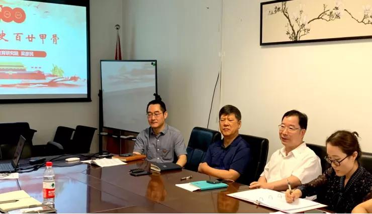 研究院党总支书记梁彦民做了题为《百年党史 百廿甲骨》的党课,他将党史学习教育、学“四史”的精神与自身业务发展有机结合,围绕“回望甲骨发现、发掘、发展”主题,带领大家回顾了甲骨文的发现、发掘、发展的历史进程,表示文字既是记录语言的符号,更是中华文化的基因与密码,甲骨文的发现、发掘、发展在人类文明史上具有划时代的意义,要认真学习甲骨文发掘保护的历史,坚定理想信念,坚定文化自信,做到学史明理、学史增信、学史崇德,学史力行,为大家呈现了精彩、生动的“线上考古微党课”。