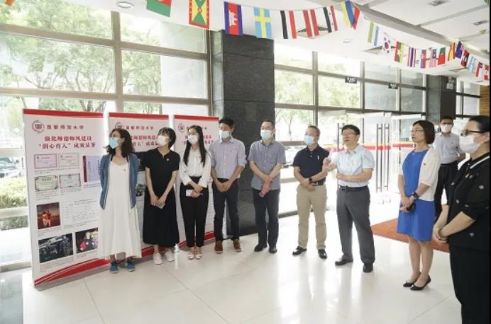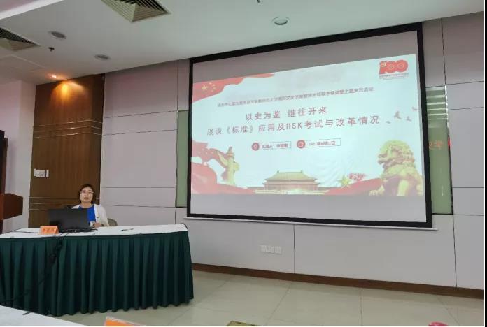 首师大国际文化学院副院长李秉震介绍了学院国际中文教育情况,汉考国际总经理助理、研发总监李亚男介绍了《标准》应用及HSK考试与改革情况,首师大国际文化学院应晨锦老师介绍了新标准的A类附录《语法等级大纲》,与会同志就党史学习教育学史力行,促进国际中文教育事业发展进行了座谈。联学活动之前,与会同志参观了首都师范大学国际文化学院的党建展览。