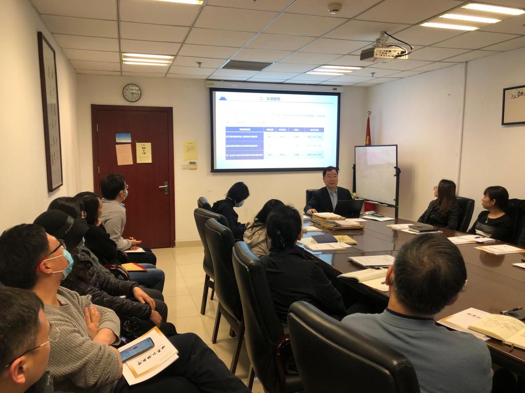 梁彦民书记首先汇报了党建工作的中心任务、研究生思政及工会教代会等工作。梁书记指出,2021年是中国共产党建党100周年,研究院党政工作的中心任务包括组织党史学习教育活动、建立健全党建制度、为迎接学校巡查整改做好准备工作。研究生思政方面,梁书记强调,要认真学习领会研究生教育大会精神,落实立德树人根本任务;导师以第一责任人、研究院作为培养责任单位,做好建设课程思政以及疫情防控要求下的教学、毕业论文写作、就业指导等工作。