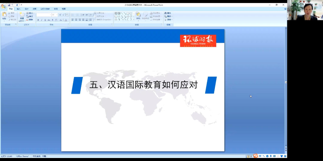 讲座正式开始后,谢戎彬先生从国际环境谈起介绍了当前中国当下所处的国际环境,以及这样的国际环境给汉语国际教育所带来的挑战。主讲人以丰富的新闻报道和真切的亲身体验作为例子阐述了自己对于国际中文教育的看法,他认为国际中文教育的发展离不开中国在国际上的国际地位以及国家的综合实力。谢戎彬先生在讲座中提到了多个不同国家和地区在疫情期间的中华文化传播以及国际中文教育的现状,随后又提到新冠疫情也使国际中文教育面临着巨大挑战。最后谢先生从自己国际新闻记者的职业经验谈起,提出了中美角力大背景下,国际中文教育破局的六大要求。