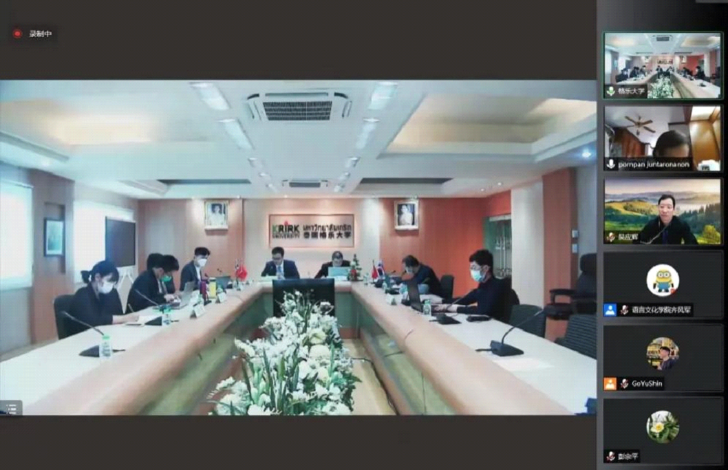 2022年1月19日下午,北京语言大学与泰国格乐大学共建的中国—东盟国际中文教育研究中心首次联席会议通过线下线上方式顺利举行。北京语言大学汉语国际教育研究院院长吴应辉教授、副院长姜丽萍教授、副院长王治敏教授与泰国格乐大学管理委员会委员李黎光博士、中国国际语言文化学院院长罗勇博士及学院教师团队共同出席会议。