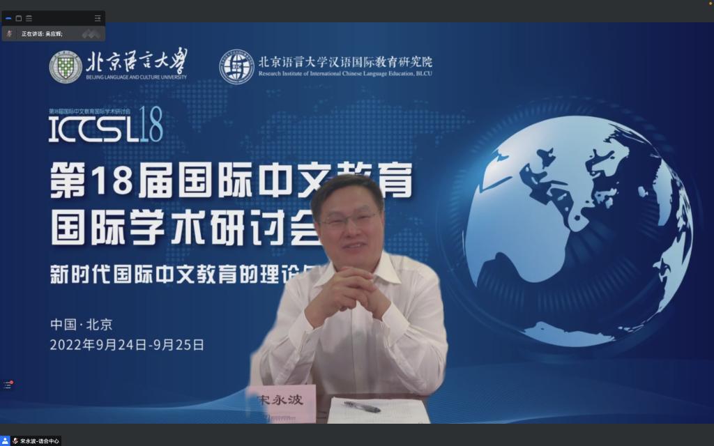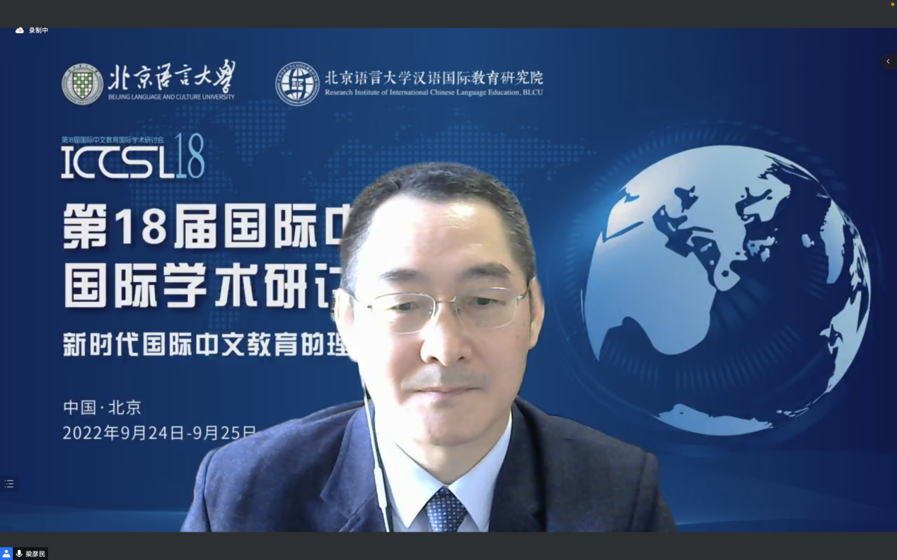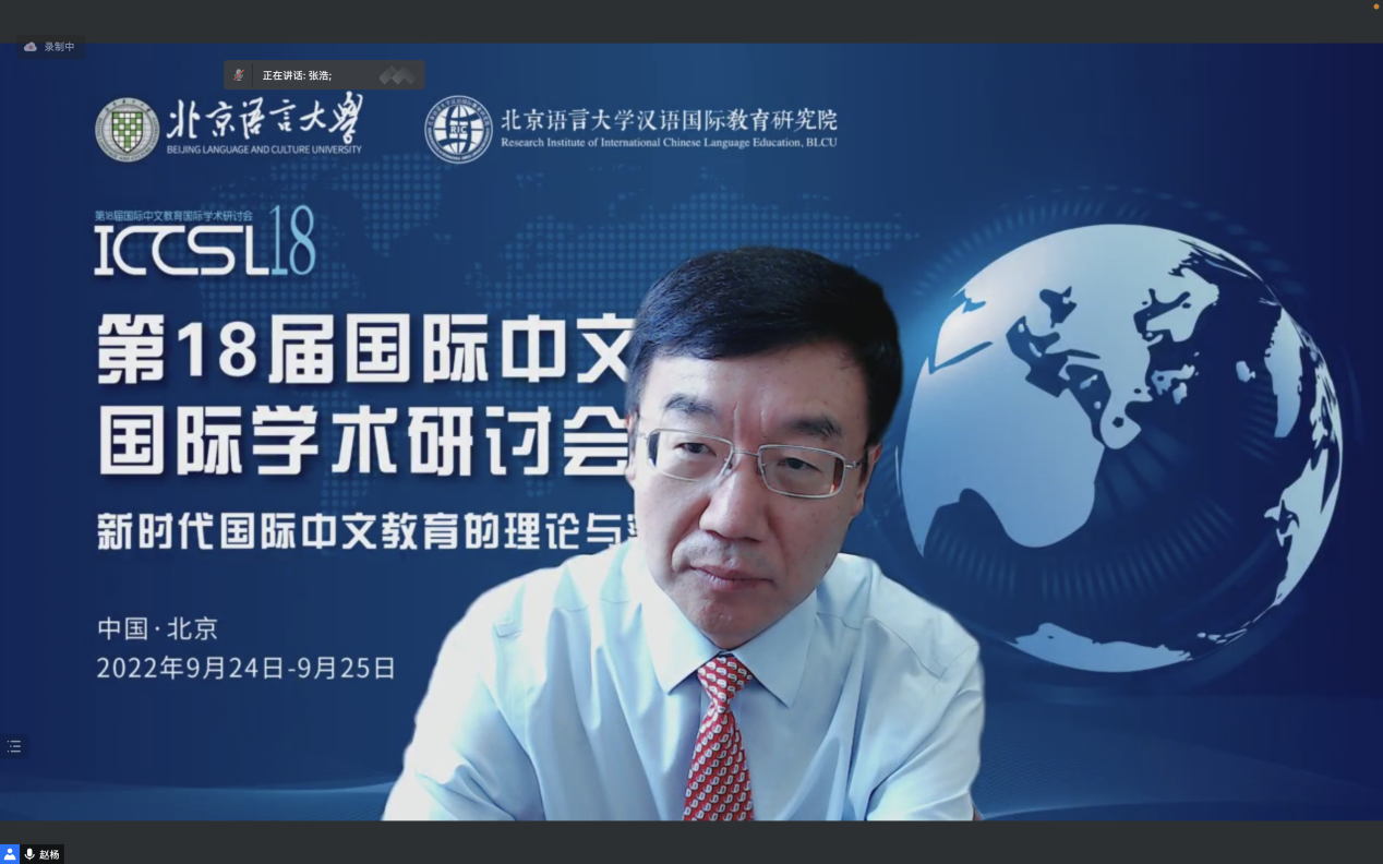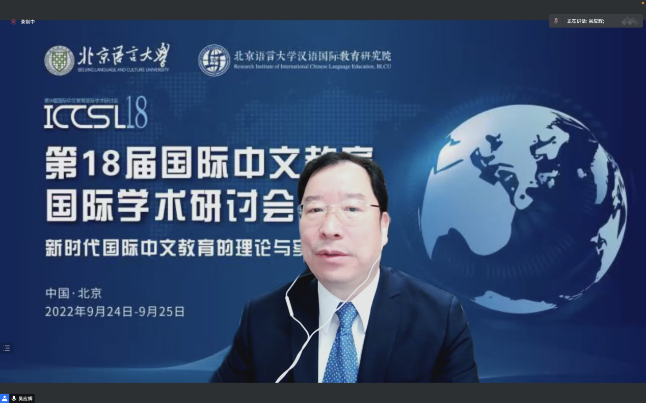 2022年9月24-25日,由教育部人文社科重点研究基地北京语言大学汉语国际教育研究院/华文教育研究院和新西兰梅西大学人文学院联合主办的第18届国际中文教育学术研讨会以线上方式在北京语言大学隆重举办。来自全国110多所高校和研究机构的800多位专家学者及高校师生参加了会议。北京语言大学党委副书记魏晖、教育部中外语言合作交流中心党委副书记宋永波、世界汉语教学学会会长、天津师范大学校长钟英华、新西兰梅西大学人文学院Kerry Taylor教授出席了开幕式并致辞,会议由北京语言大学汉语国际教育研究院院长吴应辉教授主持。