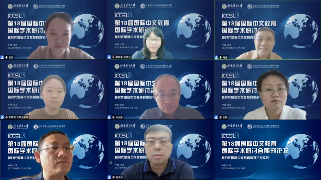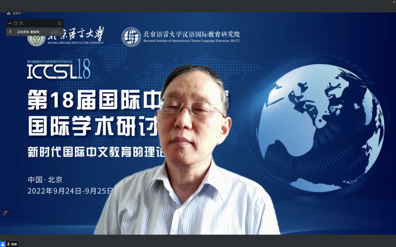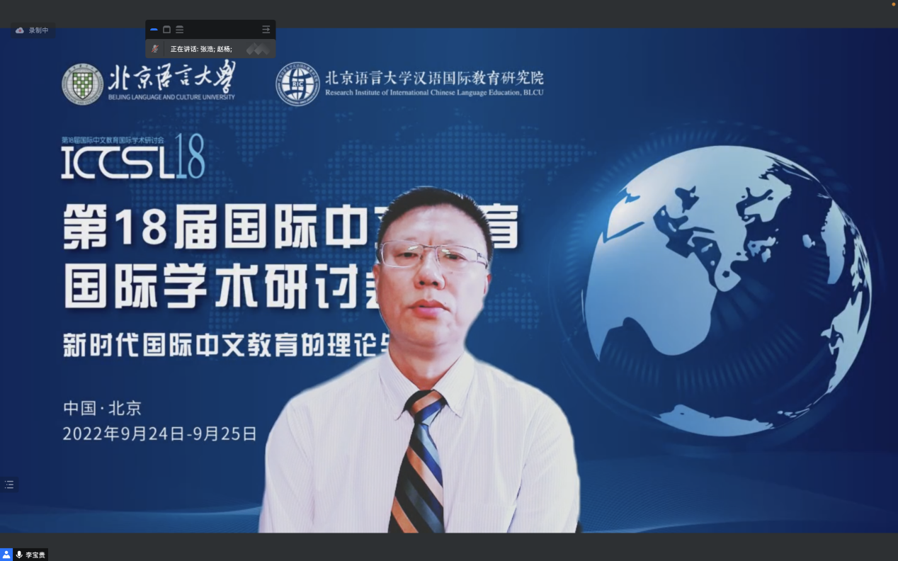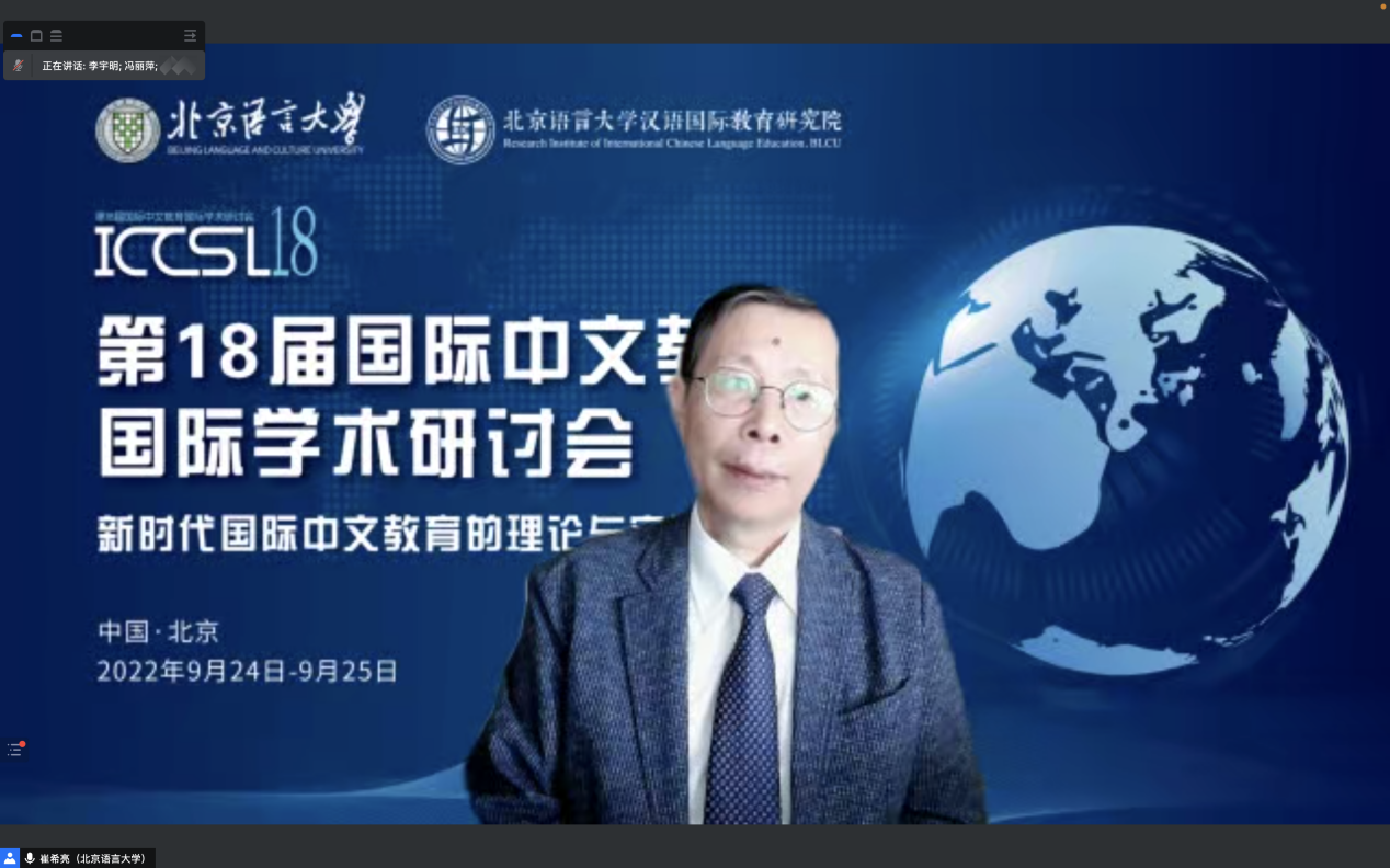 2022年9月24-25日,由教育部人文社科重点研究基地北京语言大学汉语国际教育研究院/华文教育研究院和新西兰梅西大学人文学院联合主办的第18届国际中文教育学术研讨会以线上方式在北京语言大学隆重举办。来自全国110多所高校和研究机构的800多位专家学者及高校师生参加了会议。北京语言大学党委副书记魏晖、教育部中外语言合作交流中心党委副书记宋永波、世界汉语教学学会会长、天津师范大学校长钟英华、新西兰梅西大学人文学院Kerry Taylor教授出席了开幕式并致辞,会议由北京语言大学汉语国际教育研究院院长吴应辉教授主持。
