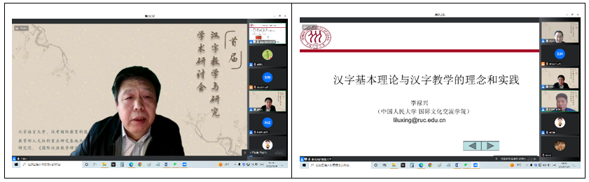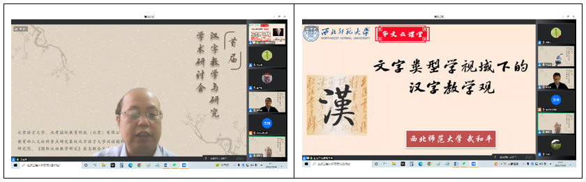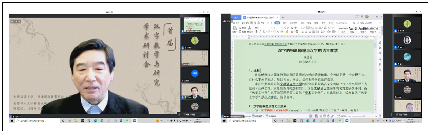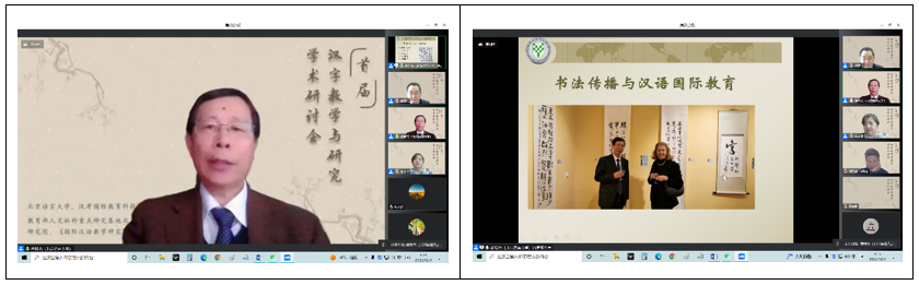 王鸿滨教授综述了研讨会的主要内容,提出本次大会呈现出以下特点:⑴ 内容广泛。研讨会邀请十位高水平专家教授从汉字本体理论、汉字教学应用研究等领域进行专题报告,并设置了汉字教学理论研究、汉字教学模式方法研究、汉字认知与习得研究、国别化汉字教学研究、华文教育汉字教学研究、线上汉字教学研究等13个专题分论坛,内容涵盖了汉字理论与教学应用研究的各个方面。⑵ 关注度高。研讨会主论坛在线观看超过800人次,小组讨论在线参加人数达到220多名,参与在线小组讨论的会议代表来自境外的十多所高校和研究机构,包括英国伦敦大学亚非学院、英国曼彻斯特大学艺术语言文化学院、西班牙瓦伦西亚大学、匈牙利罗兰大学孔子学院、阿尔及利亚奥兰大学、塞拉利昂大学孔子学院、韩国庆北国立大学、泰国华侨崇圣大学等。⑶ 参与度高。据统计,研讨会参会的117名正式代表中,高校在读博硕士人数达37人,占参会代表人数的32%,显示了越来越多的青年学子已经加入到汉字教学、研究、推广、传播的行列中来,积极探索汉字理论与教学应用问题,深入挖掘汉字蕴含的文化价值,推动语言文字国际交流合作,承担汉字文明传承和文化互鉴的时代责任。