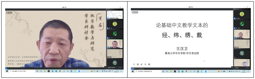 王汉卫教授的大会报告《论基础汉语教学的经、纬、绣、裁》从汉字教材文本情况入手,指出当前的教材普遍缺乏字种密度高且有文采的文本,然后具体介绍了王教授经过多年研究后潜心撰写而成的《字诗》,该《字诗》吸收了中国传统集中识字教学、韵语识字教学的优长,紧密结合华裔等外国学生汉语学习的实际,代表们交口称叹!