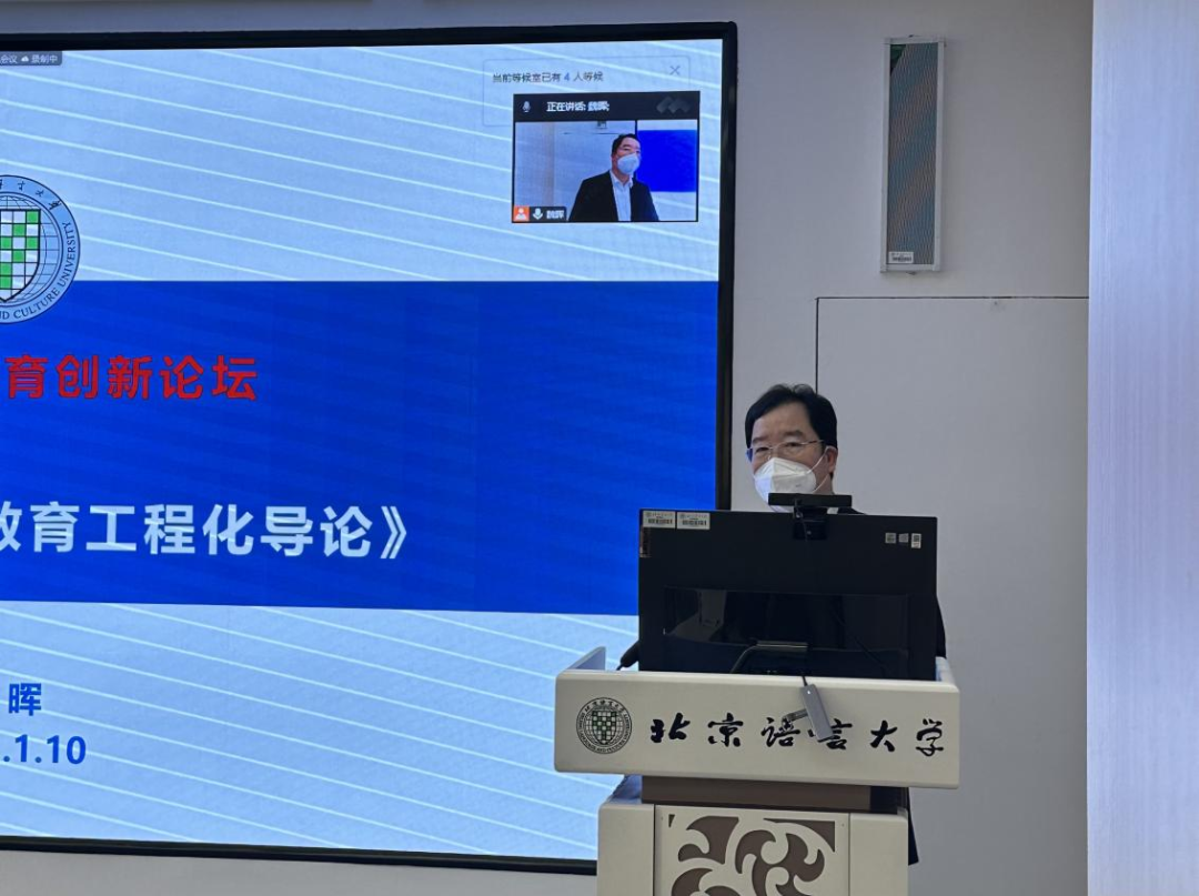 随后论坛进入讨论环节,与会老师和博士围绕国际中文教育工程化的必要性与可行性、《导论》框架、编写原则与编写方式、编写过程中如何产出其他成果等问题展开了热烈的讨论。信息科学学院院长荀恩东教授从国际中文教育工程化的规范化标准化问题入手,探讨了《导论》中工程化与国际中文教育概念体系、思维、方法等如何结合与对应的问题。汉语国际教育研究院饶高琦老师提到,希望能把已有系统、改革创新思想以及工程化思想相结合,实现国际中文教育的新旧动能转换。北京语言大学崔永华教授指出,此次学校科研处和汉语国际教育研究院提出的整合全校国际中文教育人才资源,组建创新团队,产出标志性代表性成果,实现北语国际中文教育跨越式发展的思路令人振奋。《导论》需要区分国内外国际中文教育及职业教育、基础教育中的中文教育。汉语国际教育研究院梁宇编审提出,可以用典型案例来支撑工程化理论,并从具体撰写上提出了针对性意见。汉语国际教育研究院副院长王治敏教授围绕工程体系构建、与其他教学平台关系、理清底层逻辑、增加关于标准化的章节等进行了阐述。汉语国际教育学部闻亭副教授从模块化入手,讨论了国际中文教育教学及师资的标准化问题。信息科学学院张崇教授提出学习和借鉴其他领域的工程化相关经验、增加典型案例、全书突出工程化思维和特点等问题。汉语国际教育学部殷晓君老师就标准化和规范化问题提出具体撰写意见。汉语国际教育学部苏向丽副教授从《导论》的框架以及各章的具体内容提出了非常细致的撰写意见。语言资源高精尖中心副主任刘晓海副研究员对国际中文教育工程化的必要性作了阐释,并对《导论》框架和具体章节提出了建议。信息科学学院刘颖滨老师从软件开发视角对教学过程的工程化进行了阐释。汉语国际教育学部苏英霞教授从教学和守正创新的角度对《导论》第3-6章提出了撰写意见。