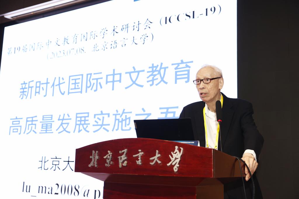 陆俭明教授在《新时代国际中文教育高质量发展实施之吾见》中以“四个必须”提出了国际中文教育高质量发展的实施方法,第一,必须树立“教书育人”的理念,从“对外汉语教学”到“汉语国际教育”,再到“国际中文教育”,更名体现了教学理念的转变,其中一个重要的理念转变就是我们开展汉语教育不能只教汉语,还需要教书育人,国际中文教育的使命要为世界各国培养他们国家需要的人才,一种是懂中文、会中文的双语、多语人才,第二种是高水平、高素质的中文人才。第二,必须重视和加强汉语书面语教学。国际中文教育所培养的双语、多语人才和高素质中文人才,需要具备跨语言交际能力,外国汉学习者如果不能阅读中文文献资料,也不可能真正了解中华文化的真谛,跨文化交际能力的培养也将会落空。汉语口语和书面语的差异远远大于西方各种语言。中华文化要走向世界,一个最重要的渠道就是靠各个国家的汉学家、中文翻译水平高的本土汉语老师来向他们的民众介绍中华文化。第三,必须尽快着手组织研究编写词语用法手册,学生出现词语的偏误,主要原因不是不了解词语的基本意义,而是不了解用法,不了解这个词语使用的语义背景。第四,必须走信息化、数字化、工程化之路。北京语言大学已经建立了符合信息化、数字化、工程化思维的“国际中文智慧教学平台”。最后陆俭明教授指出,国际中文教育事业前程远大,这项事业为年轻一代提供了奋发有为、为国家做贡献、为自己创业绩的广阔天地。