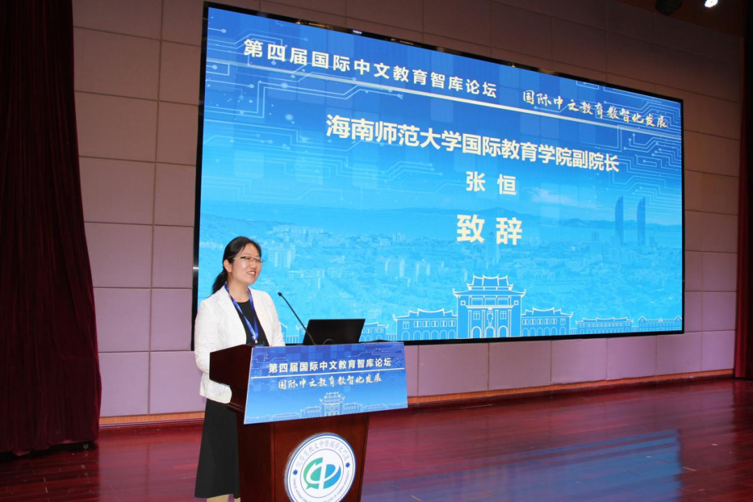 大会宣布,第五届国际中文教育发展智库论坛将由海南师范大学承办,在观看了海南师范大学的宣传视频后,海南师范大学国际教育学院副院长张恒代表下一届论坛承办方做了表态发言。