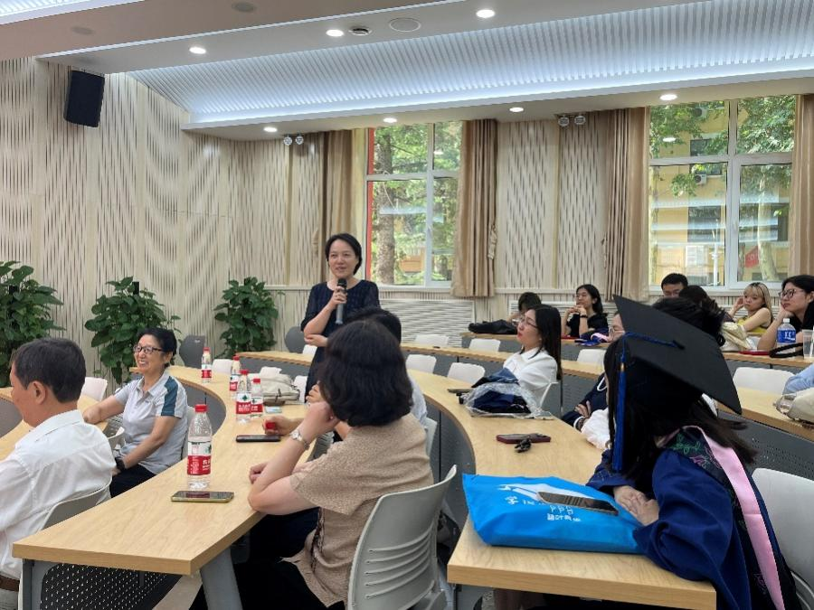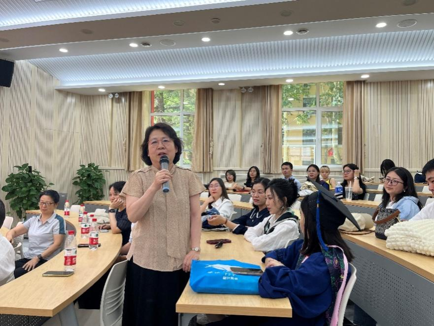 临别之际,毕业生导师也向同学们送上最美好的寄语和祝福。孟凯老师提出两点寄语:一是在仰望星空的同时更要脚踏实地,切勿好高骛远、眼高手低;二是要多读书,切勿把时间荒废在手机上,不要让自己的人格沉沦在碎片化的信息中。李润生老师也提出两点寄语:一是要切记老师们的嘱托,二是不内耗、不躺平,积极乐观地享受生活。郑艳群老师表示,同学们的经历会成为未来战胜困难的底气,以后也要勇敢克服路上的荆棘,坚持走下去。郭晶老师提到要多维度地提升自己的幸福感。李姝姝老师表示大家毕业后社会舞台的帷幕也将拉开,希望同学们能够舞出属于自己的精彩。最后,吴院长总结到,希望大家能够自立自强,在社会上靠自己的力量拥有美好幸福的生活。