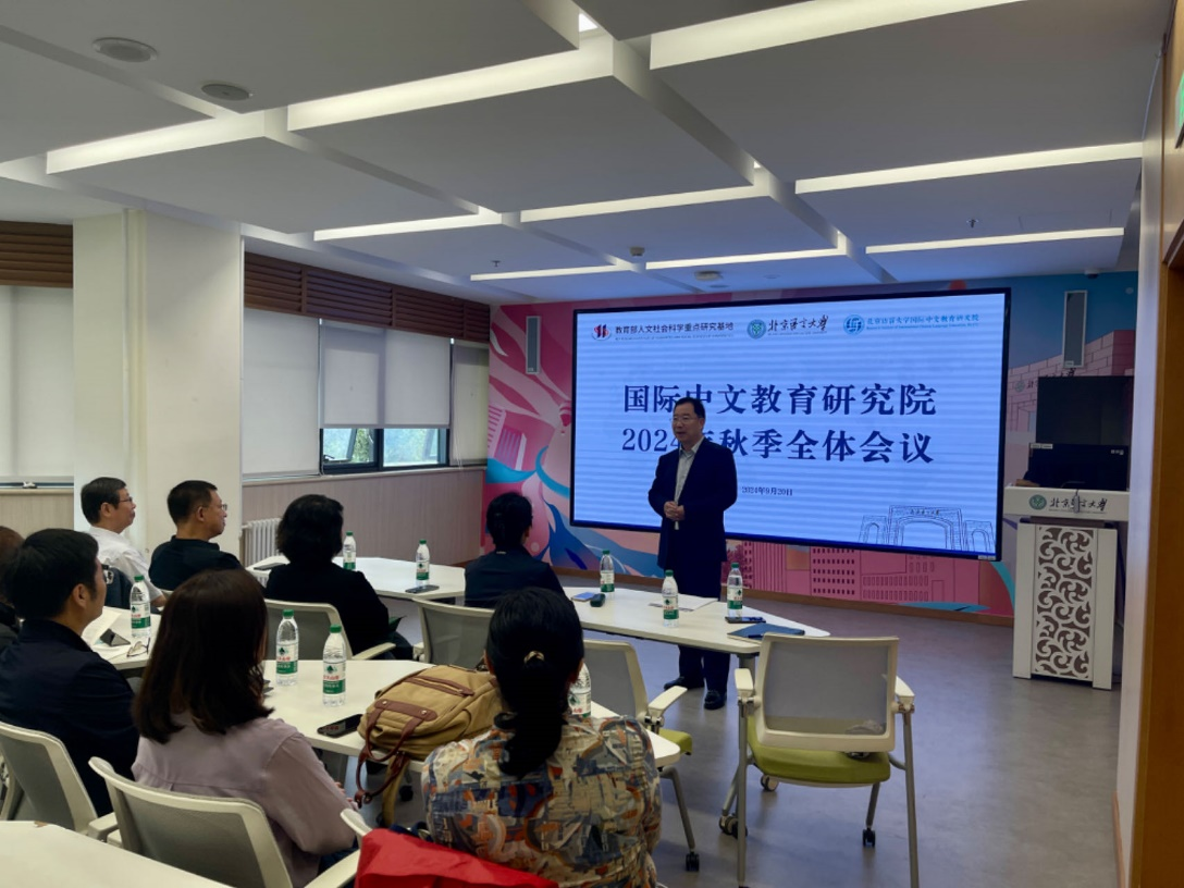 2024年9月10日,国际中文教育研究院在日新讲堂召开全体教职工大会。研究院全体专职研究人员、驻所研究人员、行政人员等参加了本次大会,大会由研究院院长吴应辉教授主持。