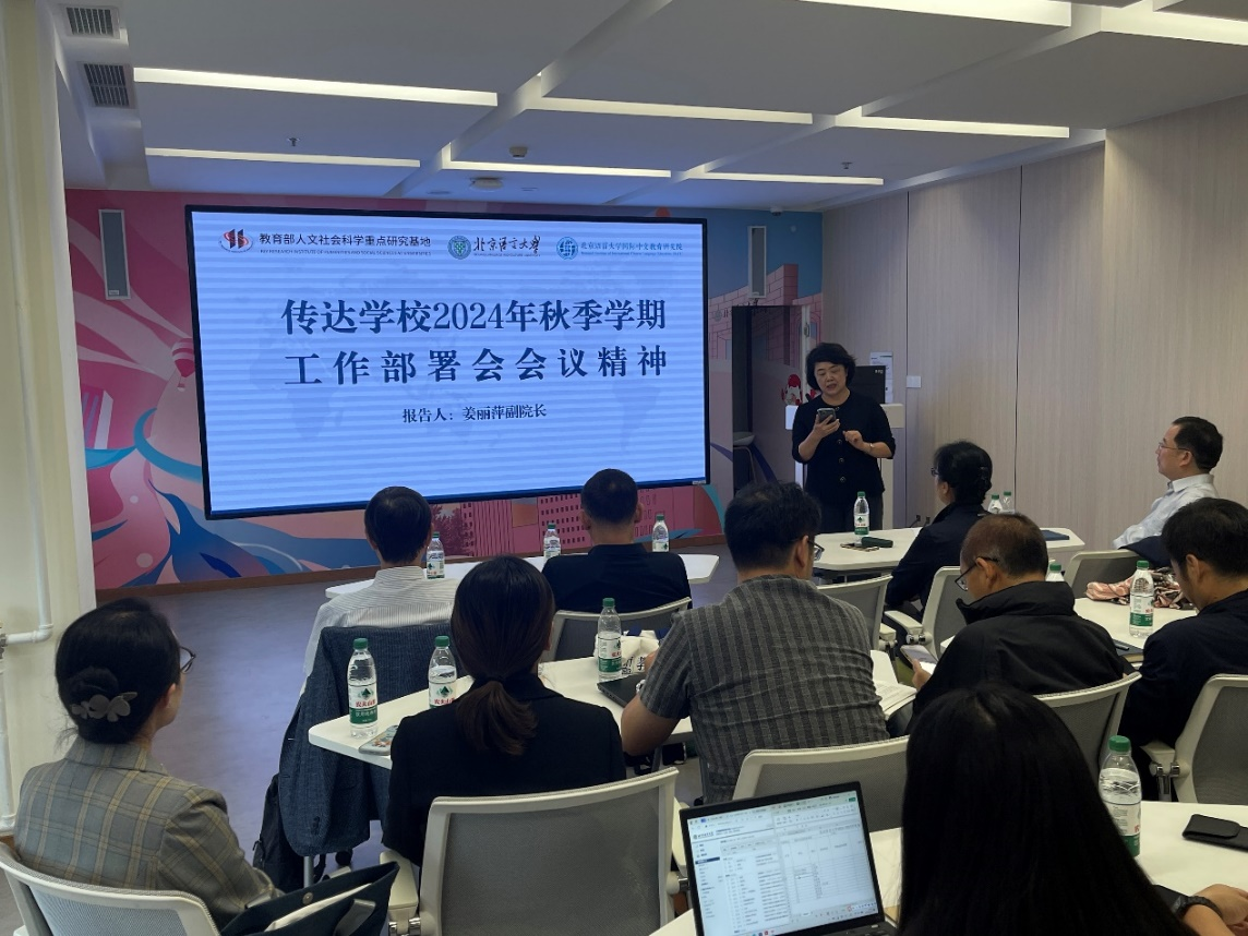 随后,姜丽萍副院长通报了学校2024年秋季学期工作部署会中段鹏校长的讲话精神,具体包括学校未来五年的发展蓝图、目标、主要任务及开展工作的方向等。同时,姜丽萍副院长还传达了倪海东书记关于学校在从严治党、人才培养、科学研究、国际化办学等方面的工作部署、主要目标和对全校中层干部的要求,要做好学校改革发展进程中的行动派和实干家,坚持系统观念,树立协同学校全面发展一盘棋的意识,打破壁垒,为北语的进一步发展贡献力量。