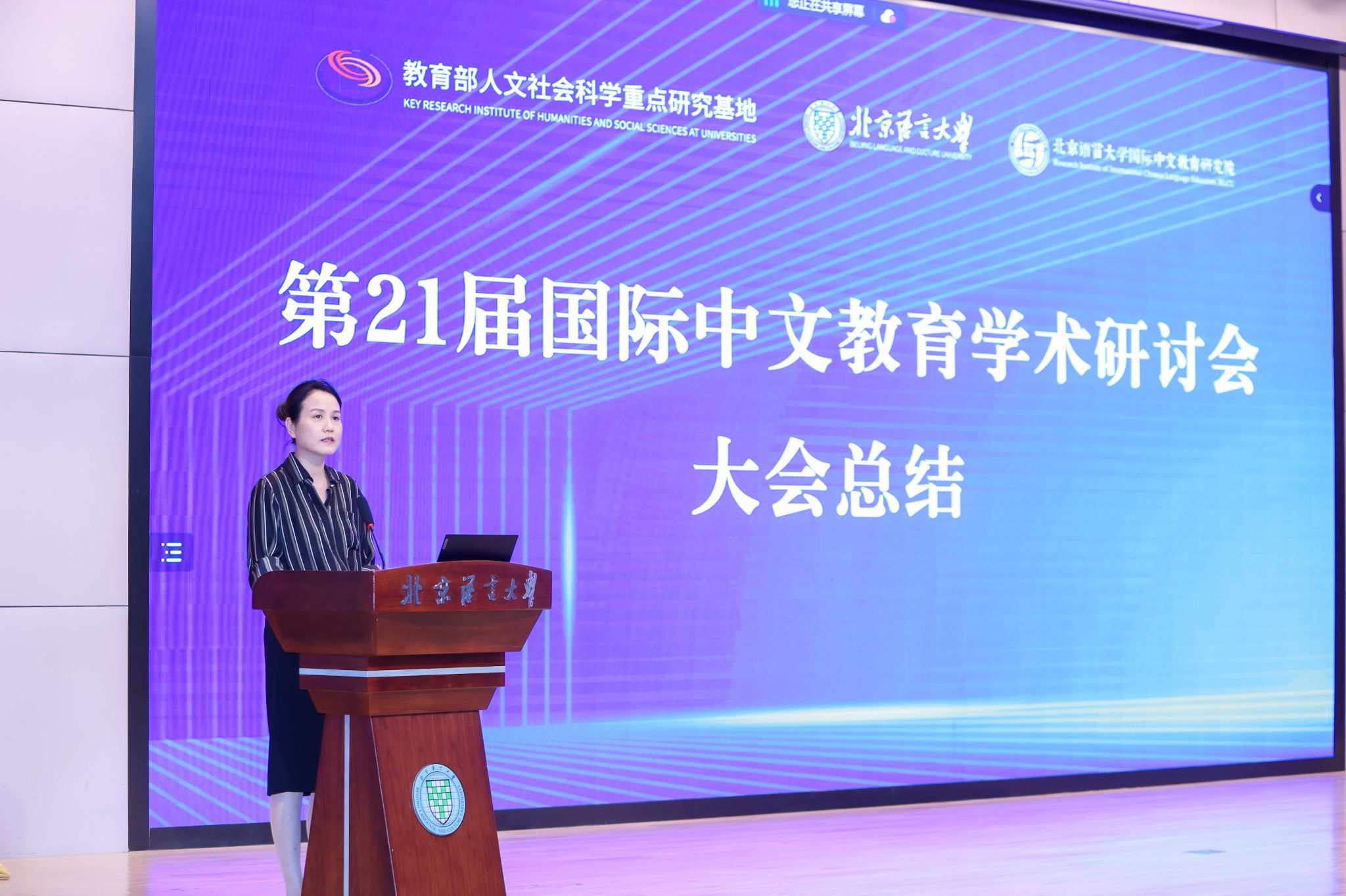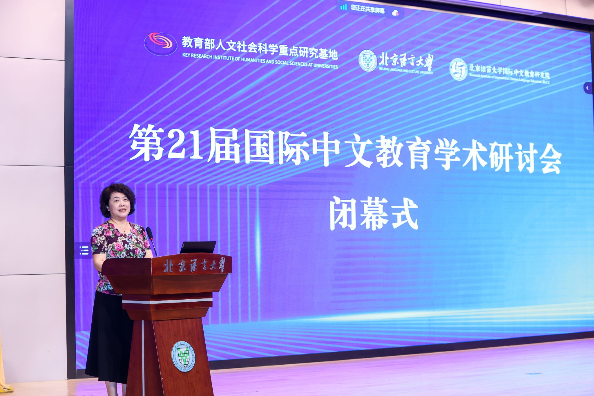 大会闭幕式由研究院副院长姜丽萍教授主持。姜丽萍教授指出,本次会议紧紧围绕“强国建设与民族复兴视域下的国际中文教育发展”这一核心主题展开了全面且深入的研讨。参会者们热情高涨、踊跃发言,积极分享各自在学术研究中的独到见解与宝贵经验,在思想的碰撞与交流中,达成了诸多具有前瞻性和建设性的共识,取得了丰硕且令人瞩目的成果。