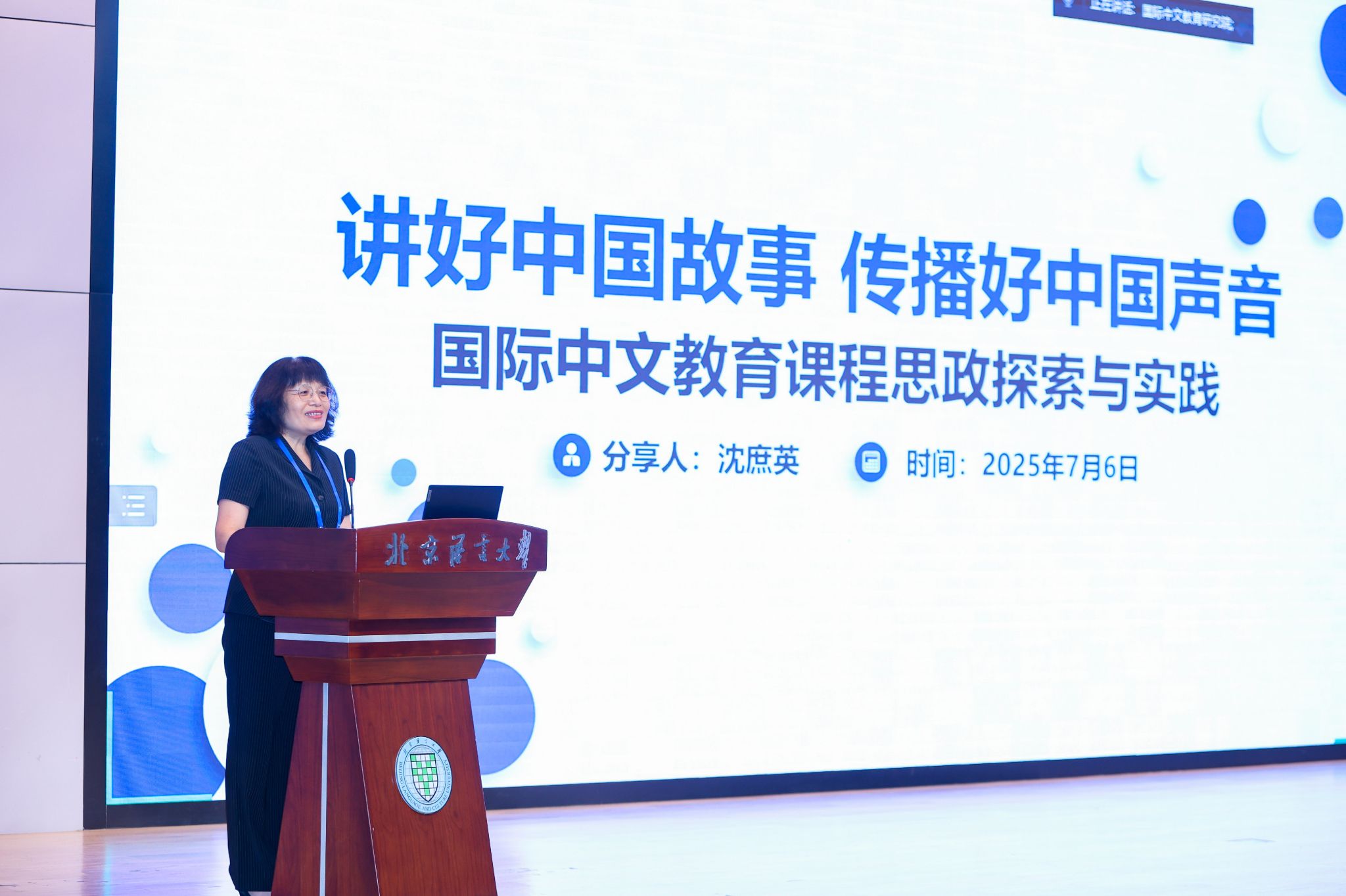 沈庶英教授在大会报告《国际中文教育课程思政探索与实践》中,系统阐述了国际中文教育课程思政的必要性、课程思政的内涵、内容构建、典型案例及价值取向。沈庶英在报告中指出,来华留学生群体对中国了解有限,存在文化不适应、法律意识淡漠等问题,加强课程思政教育刻不容缓。课程思政旨在将思政元素融入专业知识教学,培养知华友华爱华的国际化人才,实现知识教育与思想政治教育的有机结合。内容构建上,国际中文教育课程思政涵盖中国国情、中国传统文化、现代文明、法律法规、国际理解等多方面教育。通过“改革开放成就展”“绿水青山余村行”等典型案例,生动展示了课程思政的实践成效。同时,沈庶英教授强调,课程思政应秉持平等对待、客观真实、身正为先的价值取向,避免价值灌输,要分层递进、真情传递,为国际中文教育课程思政提供了全面且深入的指导,助力培养具有国际视野和正确价值观的高素质人才。