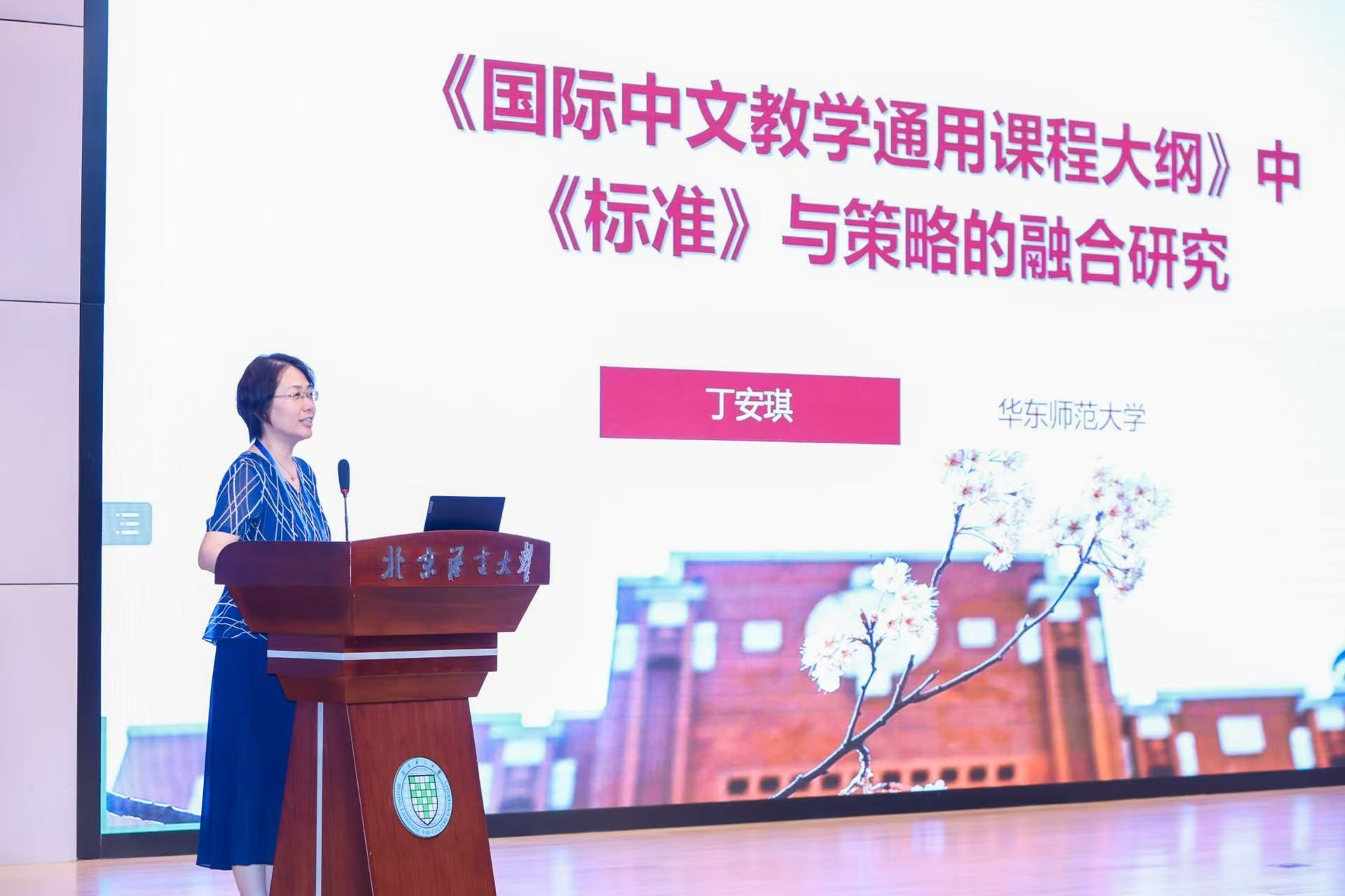 丁安琪教授在大会报告《<国际中文教学通用课程大纲>中<标准>与策略的融合研究》中深入分析了《标准》与《大纲》的内涵与关联、《标准》与《大纲》的实践转化策略、《大纲》对《标准》的反哺以及《标准》与策略融合的启示。《标准》作为能力导向的分级框架,为国际中文教育提供了能力基准;而《大纲》则作为《标准》落地的“操作手册”,通过目标分层、内容模块化和多元评价等策略,将抽象标准转化为具体教学实践。报告中强调,《大纲》不仅实现了《标准》的有效转化,还通过实践反馈对《标准》进行了细化与优化,形成了“用标准”到“优标准”的良性循环。此外,丁安琪教授还提出了《标准》与策略融合的启示,即构建“《标准》-《大纲》-实践”的动态反馈机制,确保国际中文教育既“有章可循”又“因地制宜”,为国际中文教育的标准化、本土化发展提供了宝贵思路。