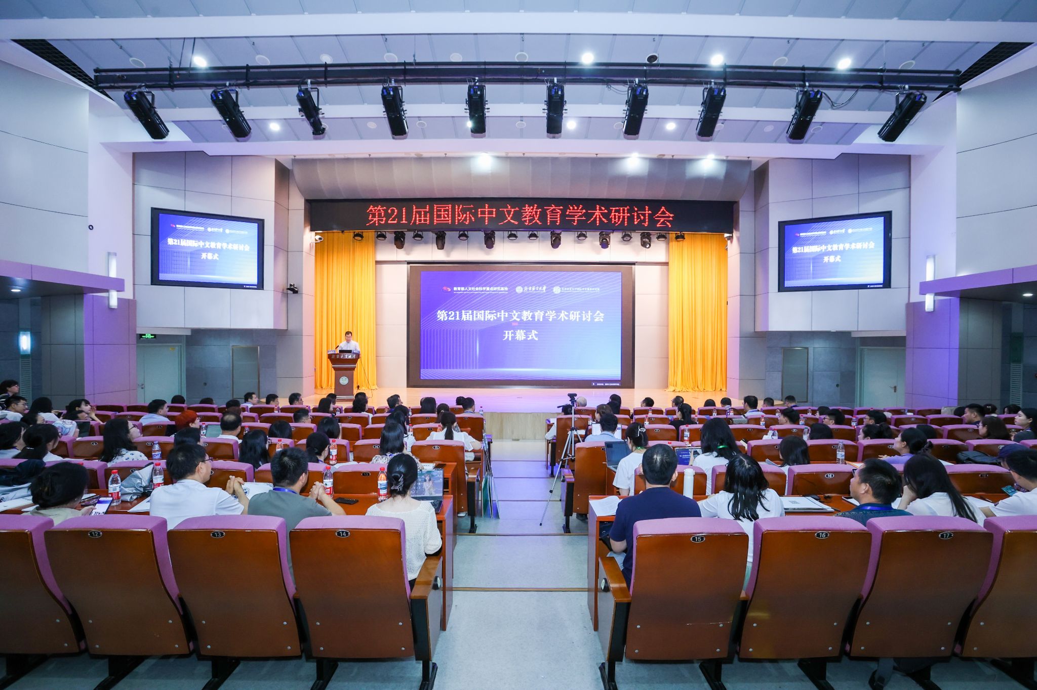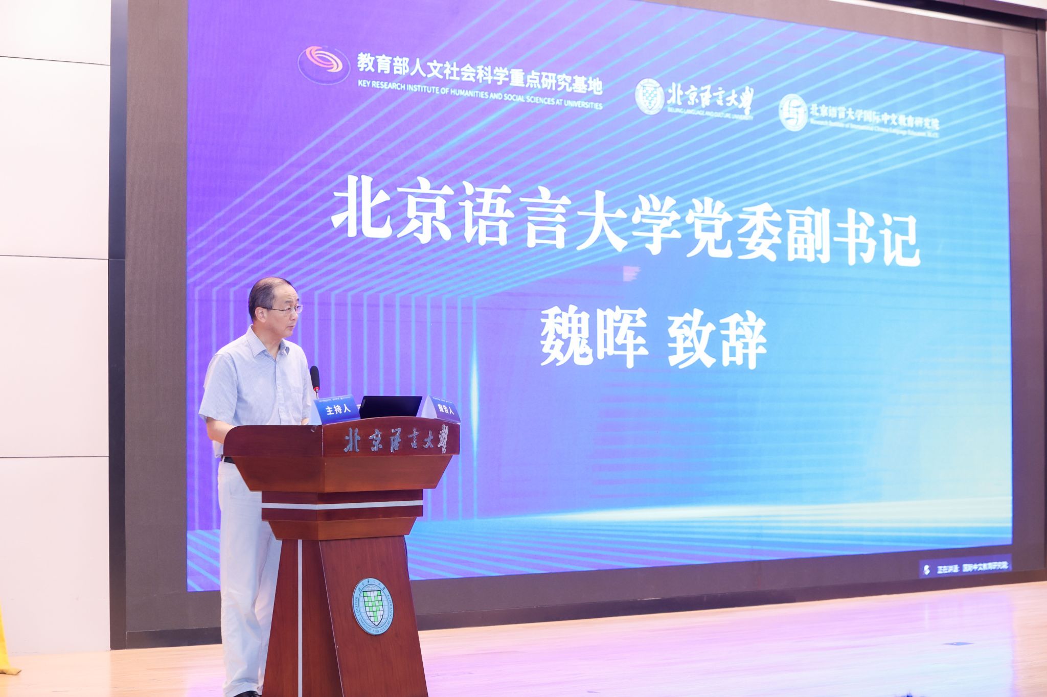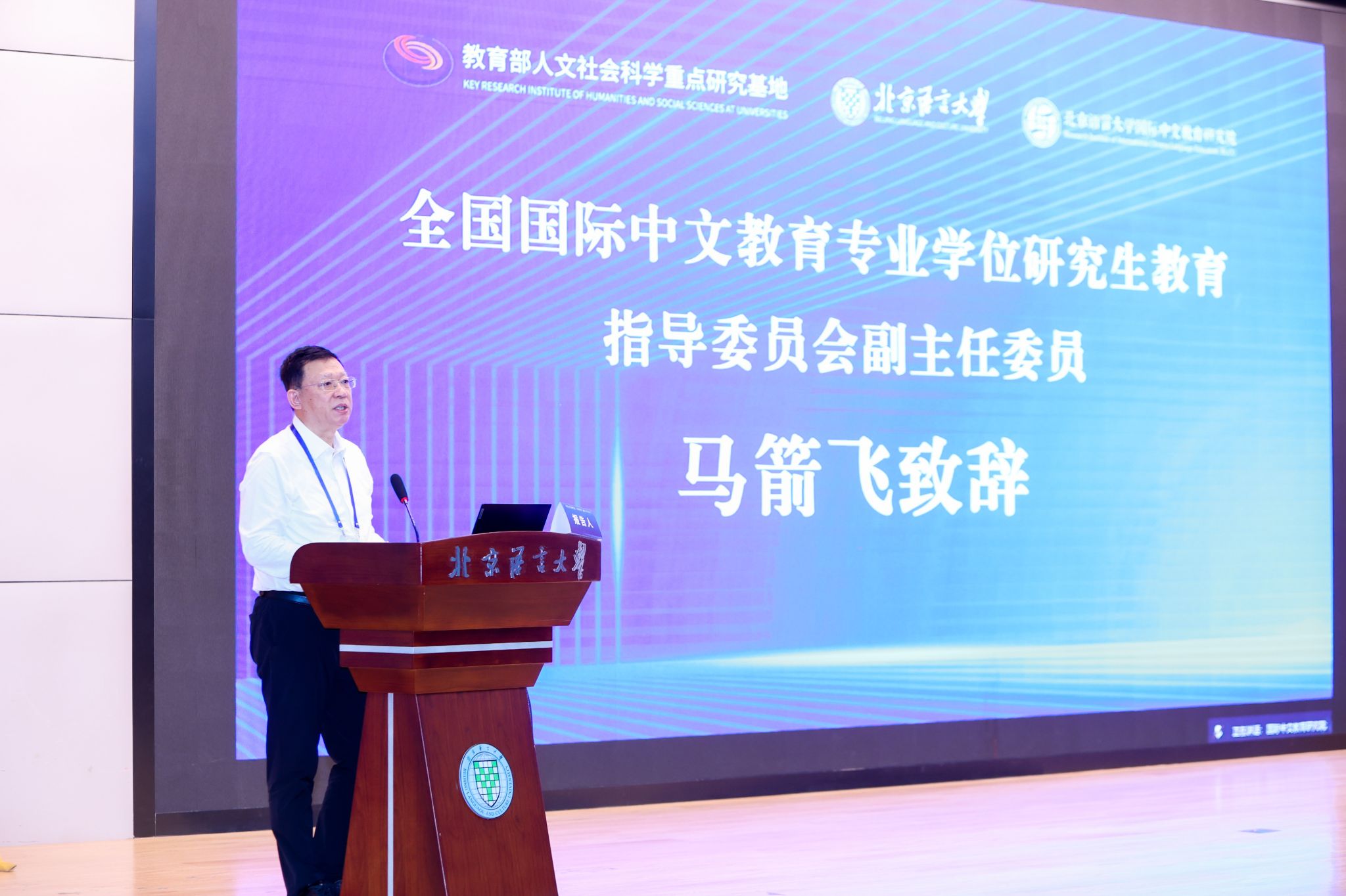 2025年7月5-6日,由教育部人文社会科学重点研究基地北京语言大学国际中文教育研究院主办、中国语文现代化学会协办的第21届国际中文教育学术研讨会在北京语言大学隆重举办。来自国内外110多所高校和研究机构的600多位专家学者及高校师生以线上线下相结合的方式参加了本次大会,会议由基地主任吴应辉院长主持。北京语言大学党委副书记魏晖、教育部中外语言交流合作中心副主任于天琪、北京大学知名教授陆俭明、全国国际中文教育专业学位研究生教育指导委员会副主任委员马箭飞出席本次会议。