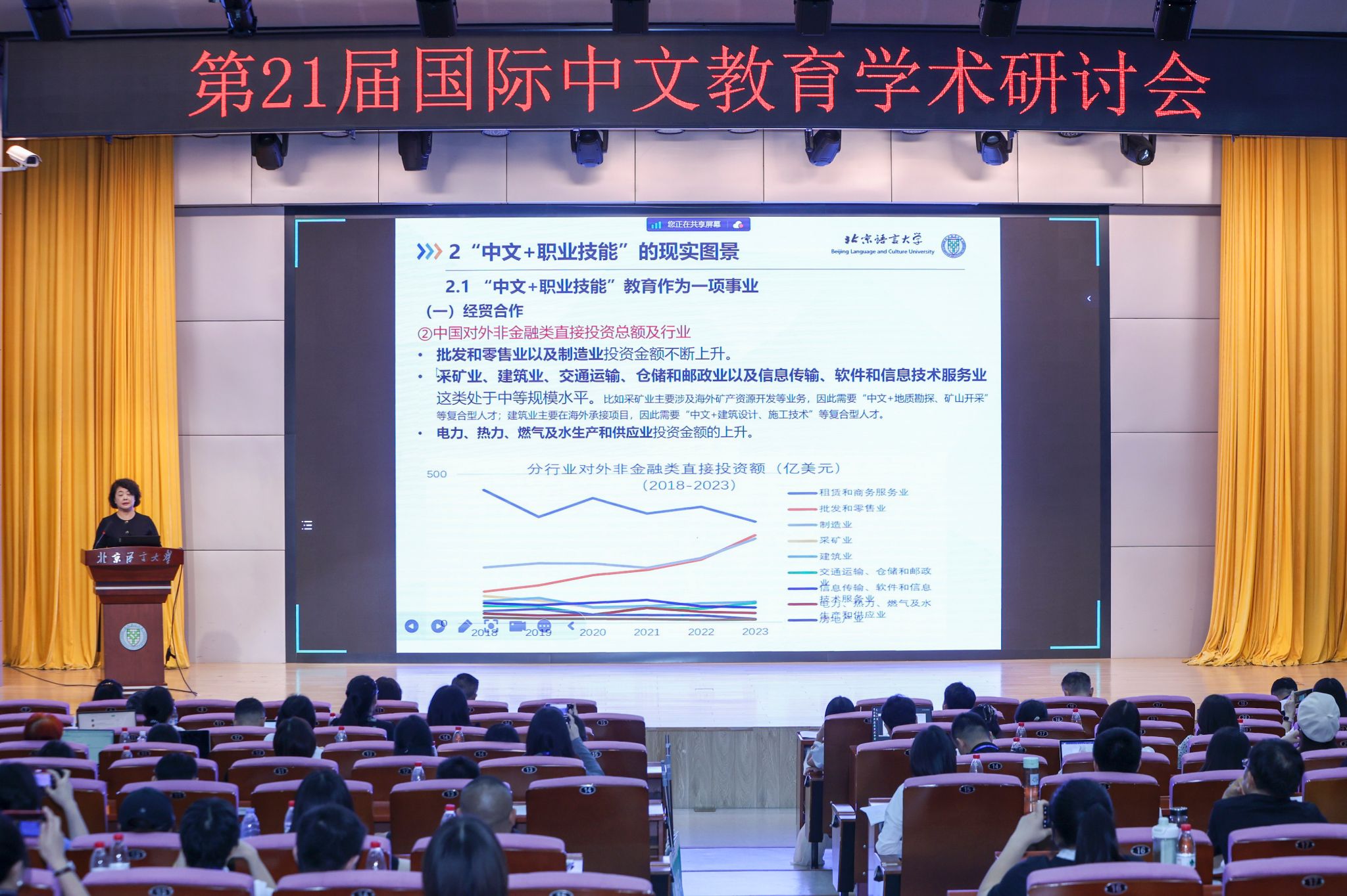姜丽萍教授在大会报告《“中文+职业技能”教育的现实图景与实践探索》中全面而深入地剖析了“中文+职业技能”教育模式的现状、挑战与发展路径。她指出,随着“一带一路”倡议的推进,国际市场对既懂中文又具备职业技能的复合型人才需求激增,“中文+职业技能”教育应运而生,成为国际中文教育与职业教育融合的新趋势。报告从事业、产业、专业三个维度详细描绘了其现实图景,包括经贸合作中的语言需求、政策导向下的宏观支持、中资企业海外布局的人才需求以及办学平台与实践的多样化发展。在实践探索方面,姜丽萍教授强调了语言特征研究、教学资源建设、人才培养体系、教师团队建设以及标准体系建构的重要性。她提出,应通过构建职业中文词语表、开发系列教材与网络课程,打造“语言+技能+实践”的复合型师资团队,并借鉴职业技能等级认定程序,加速建立职业中文能力独立评估体系,以推动“中文+职业技能”教育的可持续发展。