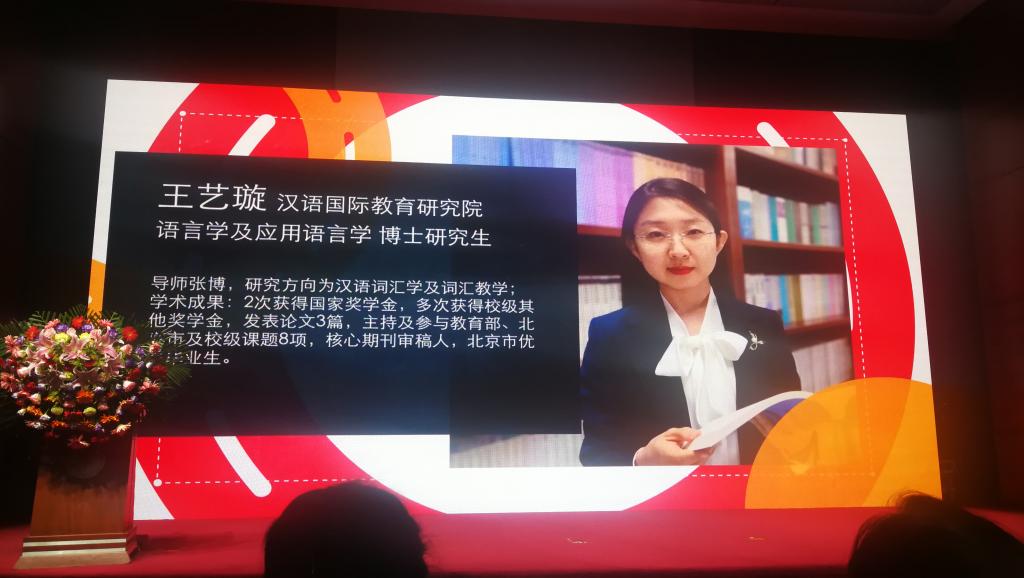 汉语国际教育研究院共有16名研究生代表获邀参加此次表彰大会。其中有6名研究生(荣获7项荣誉)上台接受表彰。其中,全校九名博士“学术之星”(全校研究生获奖率为千分之三)中研究院独得3名,分别是2017级博士生鲁志杰(导师崔希亮教授)、2018级博士生莫丹(导师江新教授)、2016级王艺璇博士(导师张博教授)。鲁志杰同学更获邀作为全校研究生科研创新“学术之星”代表发言。研究生国家奖学金(全校研究生获奖率为百分之一)获得者4名,分别为2017级博士生黄靖雯(导师石锋教授)、2017级博士生鲁志杰(导师崔希亮教授)、2017级硕士生荚凤来(导师帅志嵩研究员)、2017级硕士生吴思远(导师江新教授)。