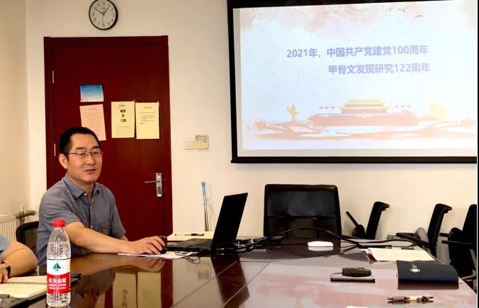 研究院党总支书记梁彦民做了题为《百年党史 百廿甲骨》的党课,他将党史学习教育、学“四史”的精神与自身业务发展有机结合,围绕“回望甲骨发现、发掘、发展”主题,带领大家回顾了甲骨文的发现、发掘、发展的历史进程,表示文字既是记录语言的符号,更是中华文化的基因与密码,甲骨文的发现、发掘、发展在人类文明史上具有划时代的意义,要认真学习甲骨文发掘保护的历史,坚定理想信念,坚定文化自信,做到学史明理、学史增信、学史崇德,学史力行,为大家呈现了精彩、生动的“线上考古微党课”。