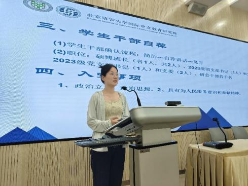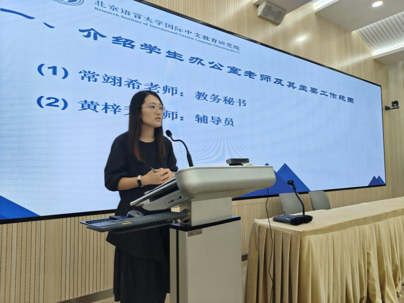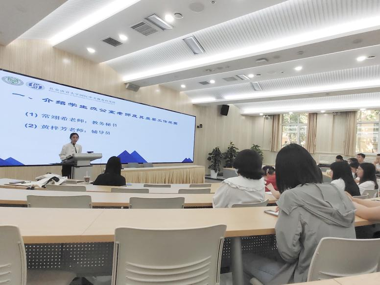 2023年9月12日,国际中文教育研究院于教二101举行2023级新生班会。本次班会由辅导员黄梓芳老师主持,办公室李荷老师、教务秘书常翊希老师及研究院35名硕士研究生新生和8位博士研究生新生参加本次班会。
