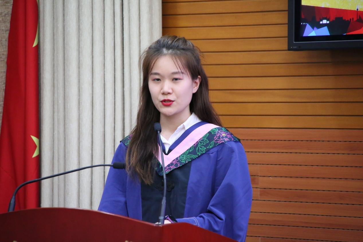 2021届博士毕业生黄靖雯、硕士毕业生邰沁清代表全体毕业生发言。黄靖雯同学回忆了自己在求学过程中的心酸与痛苦,也分享了取得成功的幸福与成就感。她表示,在北京语言大学度过的时光是她生命中难以磨灭的岁月,她将永远铭记。邰沁清同学回忆了在北京语言大学生活的点点滴滴,无数同学们见证了北语的发展,北语也陪伴着同学们成长。发言最后,两位同学都向母校、向老师、向同学们表达了真挚的感谢,并祝愿每一位毕业生都能拥有美好的明天。
